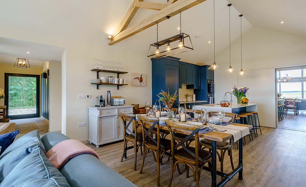 One of the smaller properties at Ilsley Farm Barns, 2 Pheasant offers the same high-end features as its larger counterparts. Expect inviting living areas, comfortable beds, and impressive views stretching across farmland to the North Wessex Downs Area of Outstanding Natural Beauty.