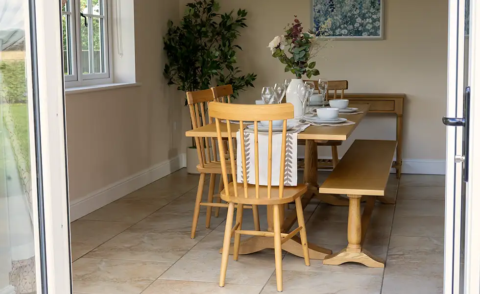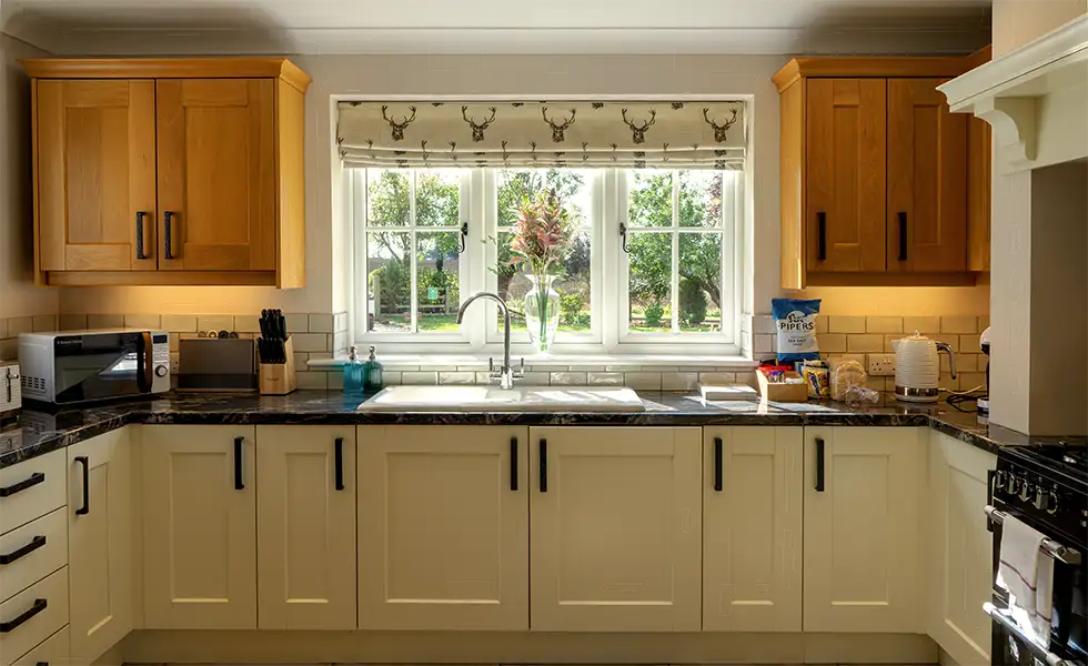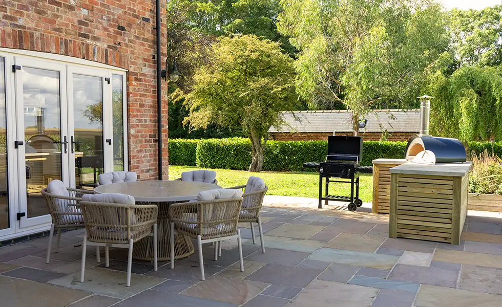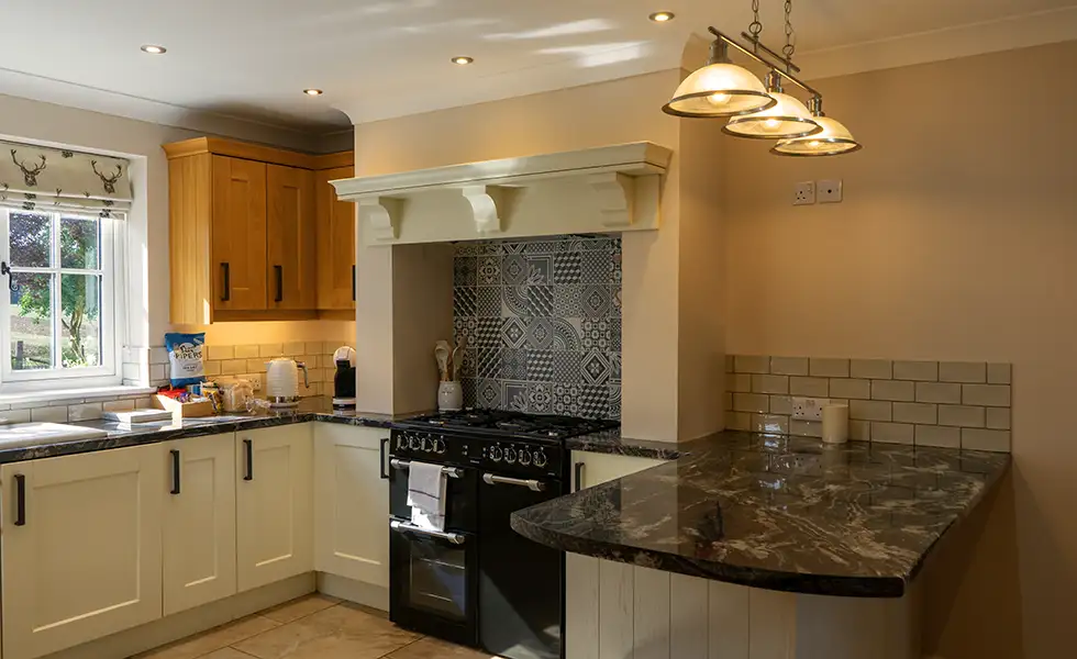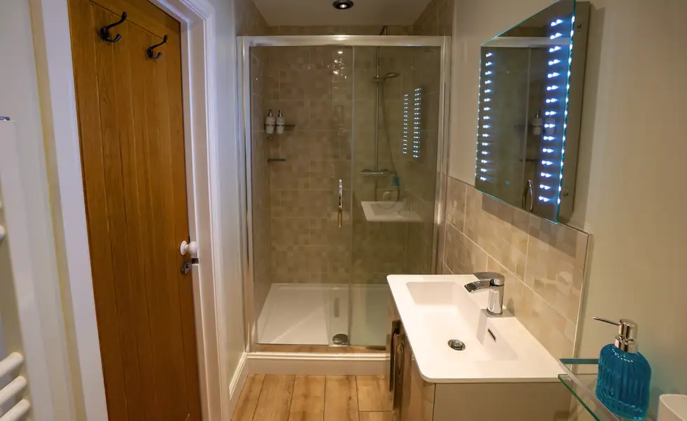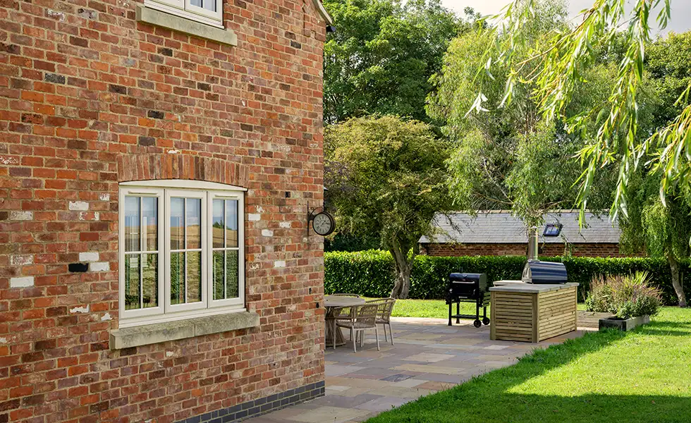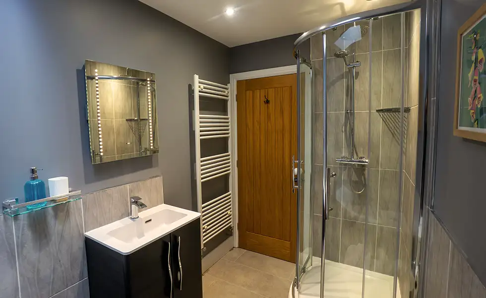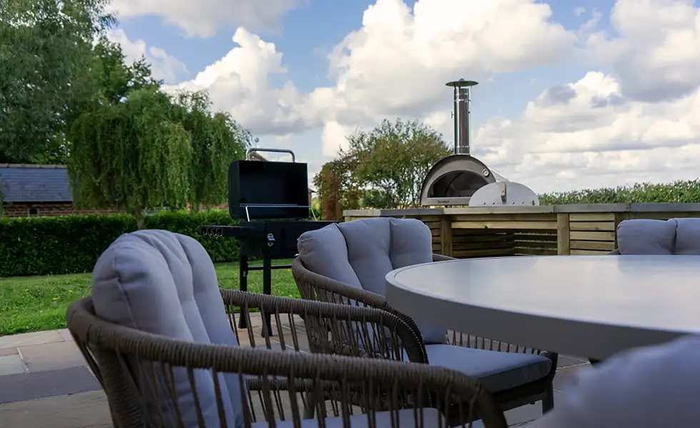 With three large bedrooms and spacious living areas, you’ll find plenty of room to socialise and relax. The kitchen has a unique central fireplace which can be adapted to where you’d like to sit, perfect for those cold winter evenings. During the spring and summer, the private garden provides a seating area, BBQ and pizza oven with views across the surrounding farmland. There’s also a direct route to access the footpaths in the area, giving you plenty to explore.